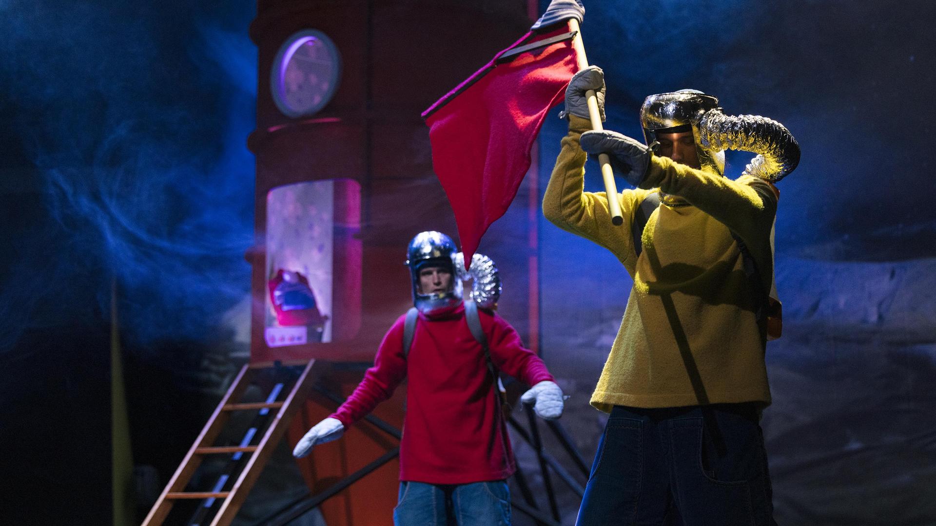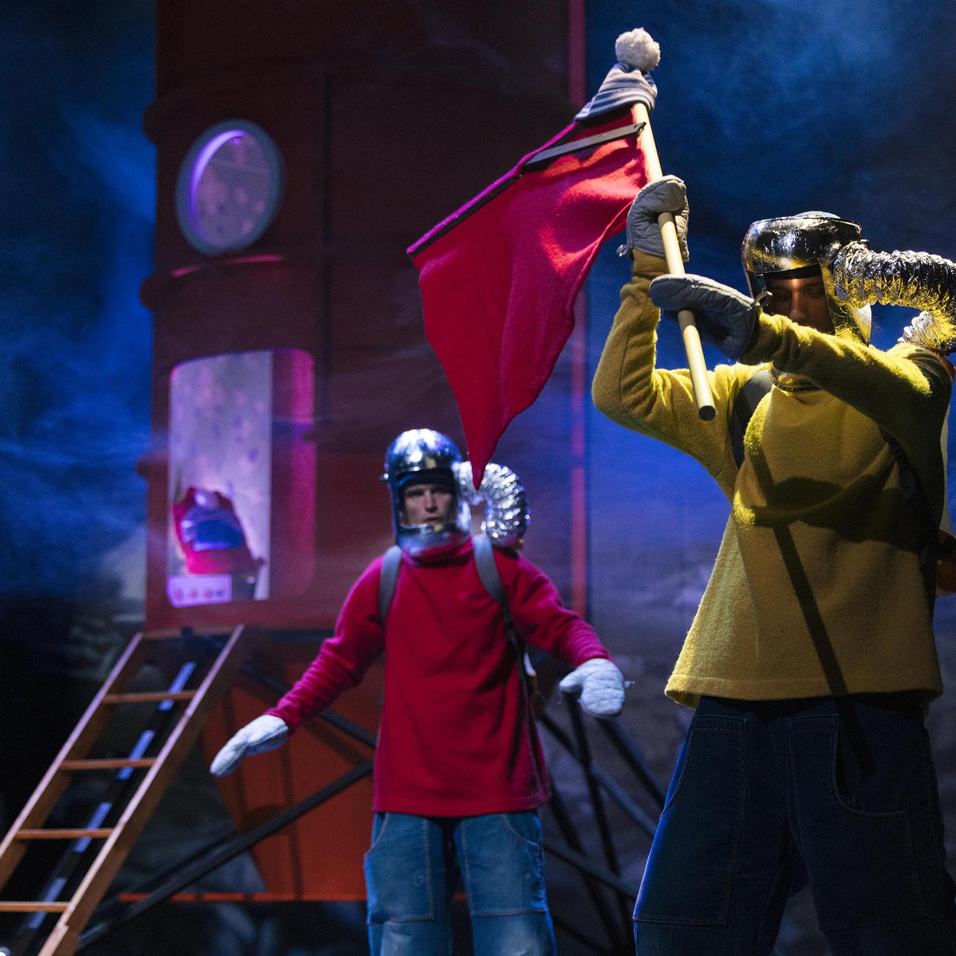 De volgende dag beginnen ze direct. Er moet heel wat gebouwd worden: een raket, een lanceerbasis en natuurlijk ruimtepakken. Als dat maar goed gaat…