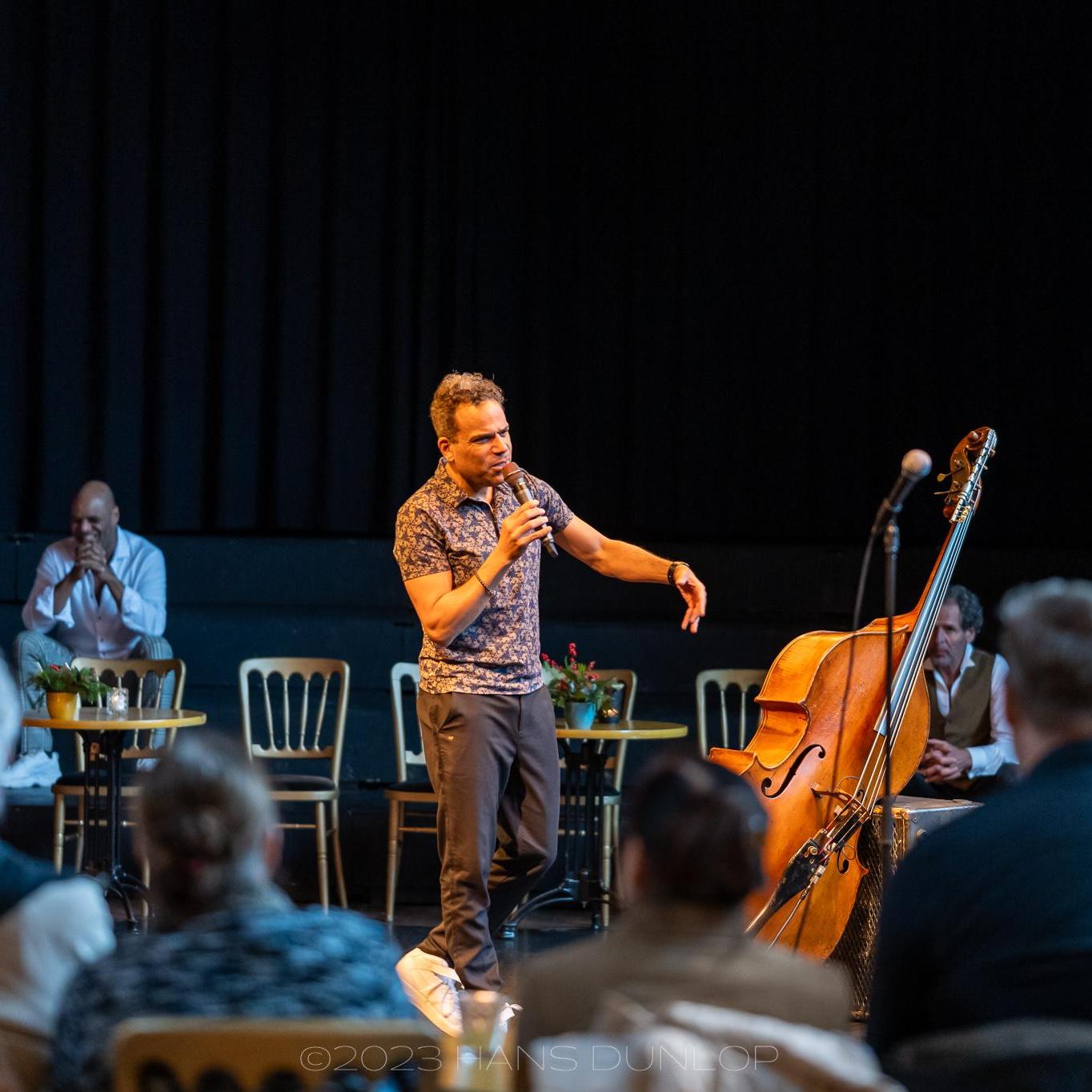 Een knallende stand-up & jazz-theatervoorstelling.