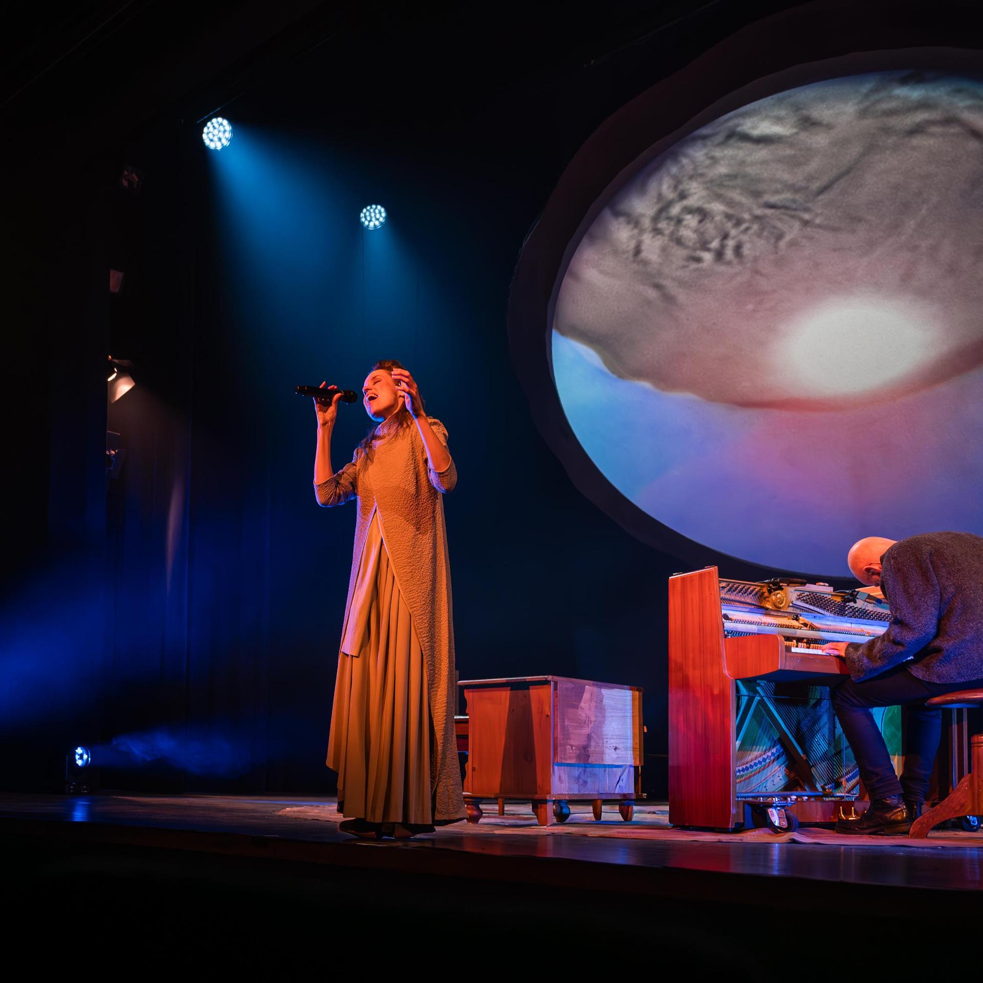 Via songs, spoken word en storytelling weeft ze samen met klankkunstenaar Sytze Pruiksma een ingenieus muzikaal landschap, soms edgy en van nu, soms met de bezwerende cadans van een oeroud ritueel.