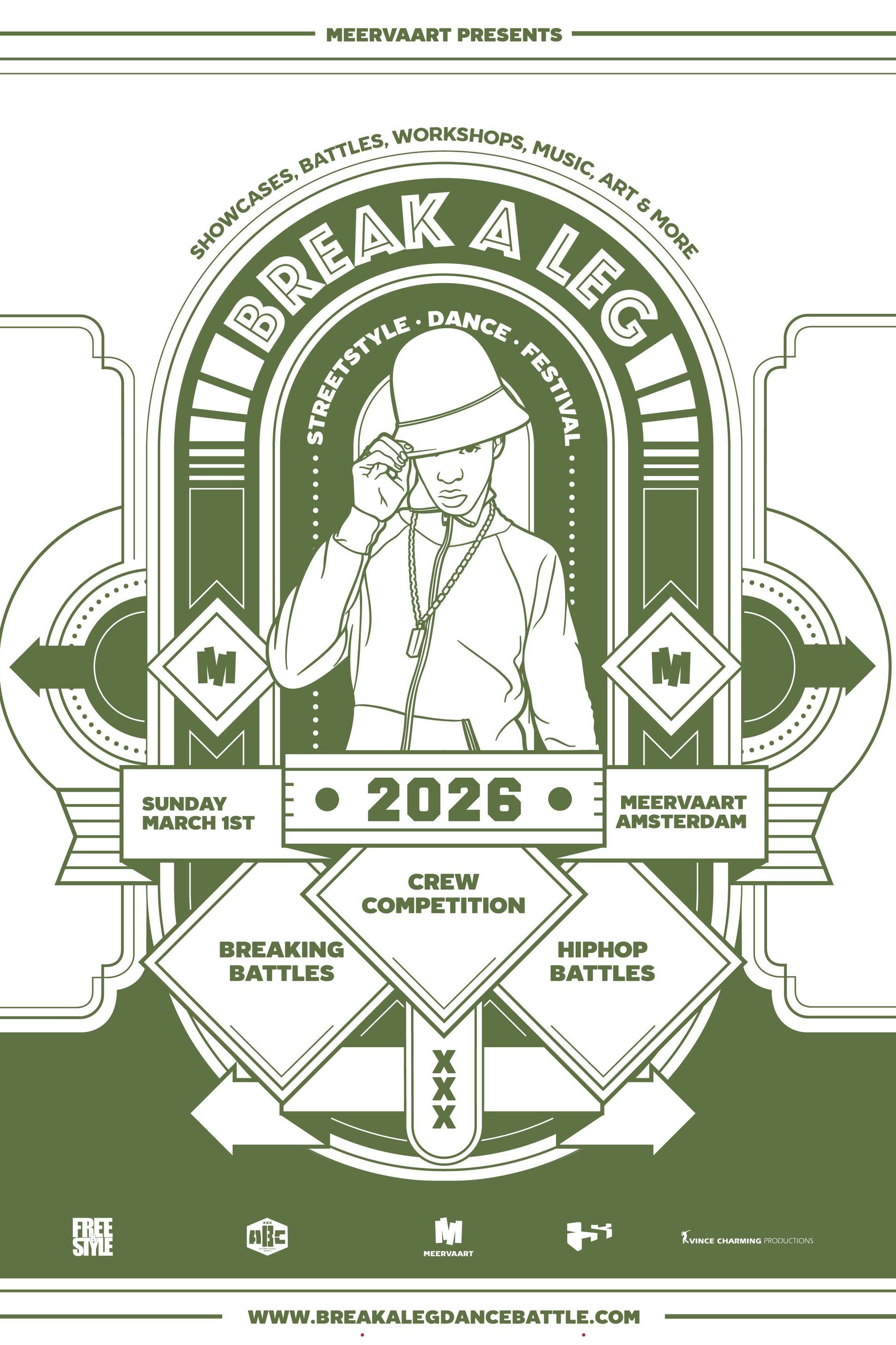 Met de energie, drive en liefde die het evenement elk jaar opnieuw losmaakt, belooft Break A Leg Dance Battle 2026 wederom een onvergetelijke editie te worden. Of je nu komt battlen, supporten, jammen of simpelweg wilt genieten van de sfeer: je bent van harte welkom in Meervaart.