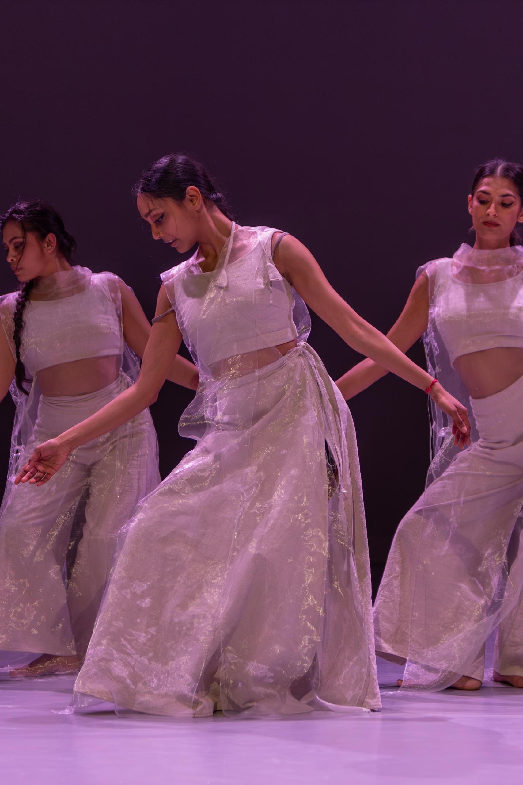 'Via Poernima's eigentijdse bewegingstaal, geworteld in Bharata Natyam, opent de voorstelling een weg voorbij dualiteit, naar de eenheid van energie en bewustzijn’, stond er in het programma. Bharata Natyam is een klassieke dans die in het zuiden van India ontstaan is in tempels en gekenmerkt wordt door vele hoofd-, oog-, en nekbewegingen, ritmisch voetenwerk, handgebaren en verhalende expressie. Elk gebaar en elke beweging heeft een bepaalde betekenis. Poernima Ghobardhan, wier naam het dansgezelschap draagt, is geboren in Den Haag en getraind in deze dansvorm. Maar ze denkt vooral voorbij de klassieke rigide regels.