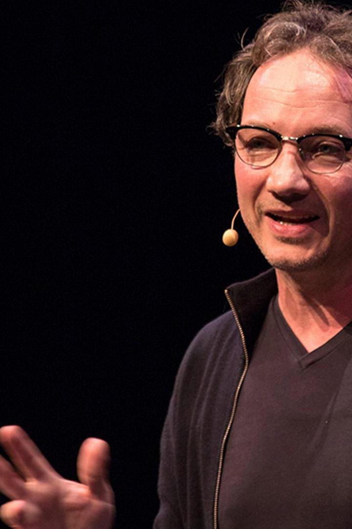 Het is een zonnige zondagmiddag. Niet echt een middag om in het theater een lezing te volgen. Toch zijn er veel mensen in de foyer op de begane grond. Het gezellige gekletst galmt door de ruimte.